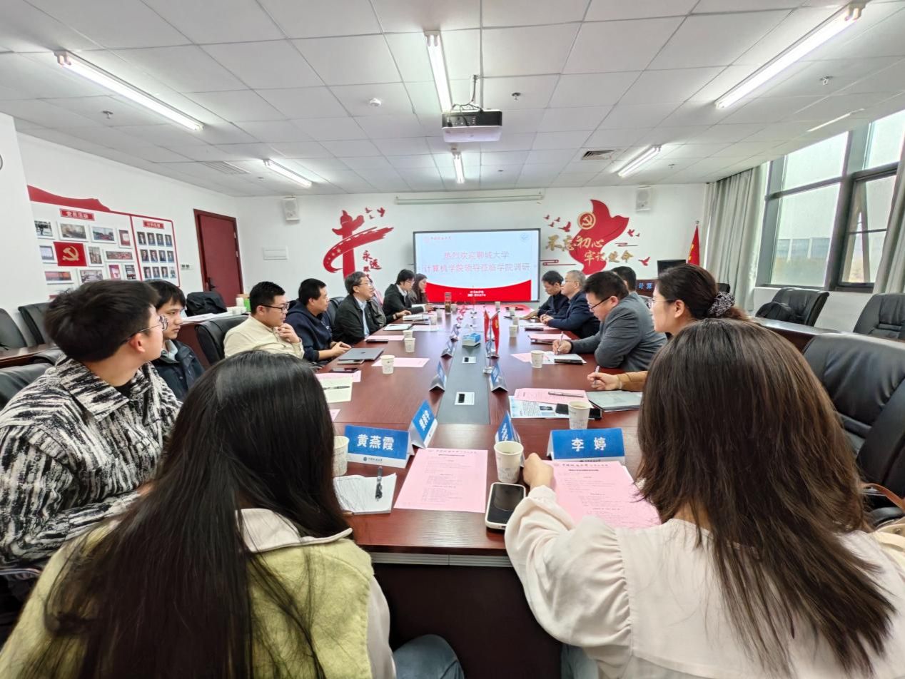 11月7日上午,聊城大学免费看a片 党委副书记兼院长贾仰理、教务处副处长张绪涛、免费看a片 副院长李成友、教务处教学质量管理中心副主任耿庆军、免费看a片 软件工程系主任韩玉艳、专业教学实验中心主任凌海云、工程教育专业认证办公室主任李德奎一行7人来免费看a片 交流访问。免费看a片 副院长刘刚、各系室主任、教师代表参会。刘刚副院长主持交流会。