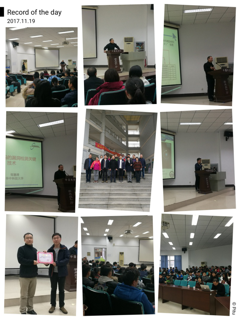 (通讯员:章丽平)11月19日,由免费看a片 信息安全系主办的网络空间安全及大数据研讨会在北一楼学术报告厅胜利召开。分别来自华中科技大学、武汉大学、海军工程大学、国家网络空间安全发展创新中心的邹德清教授、王骞教授、马良荔教授和王得金研究员等四位专家为广大师生们带来了精彩的报告,整个报告厅座无虚席,充满了浓厚的科研气氛。