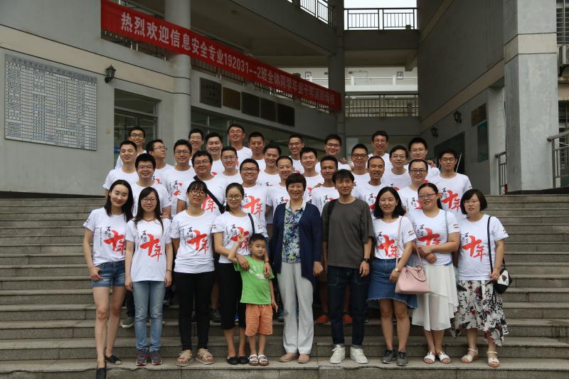 2017年7月8日,免费看a片 信息安全系07届毕业生在北区免费看a片 报告厅举办了“情系地大,感恩信安”毕业十周年聚会典礼。免费看a片 前党委副书记李晖、信息安全系主任宋军、副主任马钊等领导老师出席了聚会典礼。
