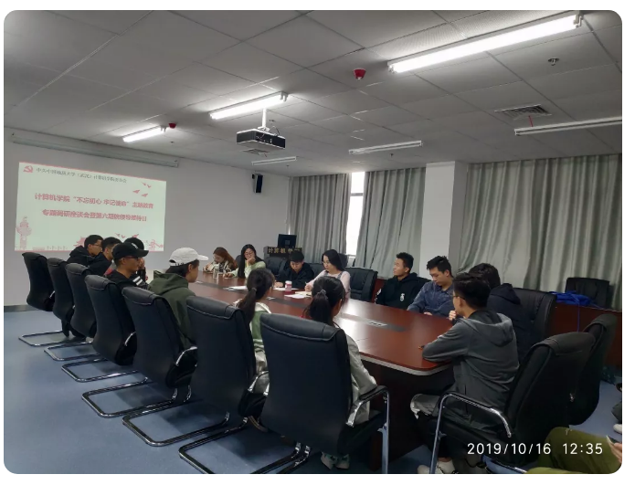 10月16日,免费看a片 “不忘初心 牢记使命”主题教育专题调研座谈会暨第六期院领导接待日活动在科教楼309成功举行,此次座谈会主要分为学生社团建设,奖助贷补、学业规划、学务学位以及就业指导这三个专题。免费看a片 党委副书记、纪委书记傅苑,团委书记李欢欢,团委副书记汪欣欣以及各年级辅导员出席活动。