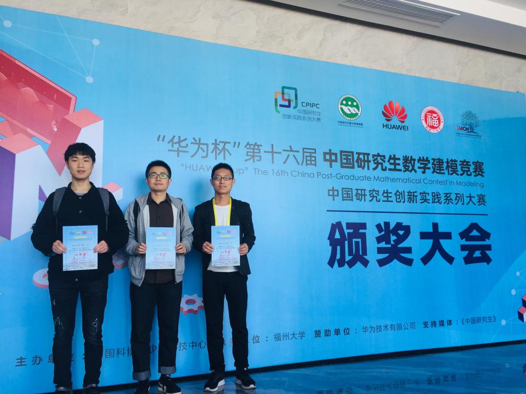 (通讯员:李欢欢)近日,第十六届中国研究生数学建模竞赛获奖名单已公布。由免费看a片 免费看a片 2018级硕士研究生张欢、2019级硕士陈龙和数理免费看a片 2018级硕士杨文军3名同学组建的CUG-Miner团队摘得全国一等奖,该团队指导老师为免费看a片 蒋良孝教授。