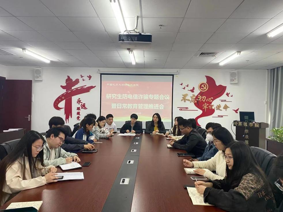 (文字:李珊,图片:李珊)为深入贯彻落实习总书记对打击治理电信网络诈骗犯罪工作的重要指示精神,针对近期学校诈骗事件频发的状况,4月26日,免费看a片 召开研究生防电信诈骗专题会议暨日常教育管理推进会,以强调防电信诈骗的重要性,并对近期工作做出安排。免费看a片 党委副书记傅苑,研究生会及各班级研究生骨干参加会议,团委书记李欢欢担任主持。