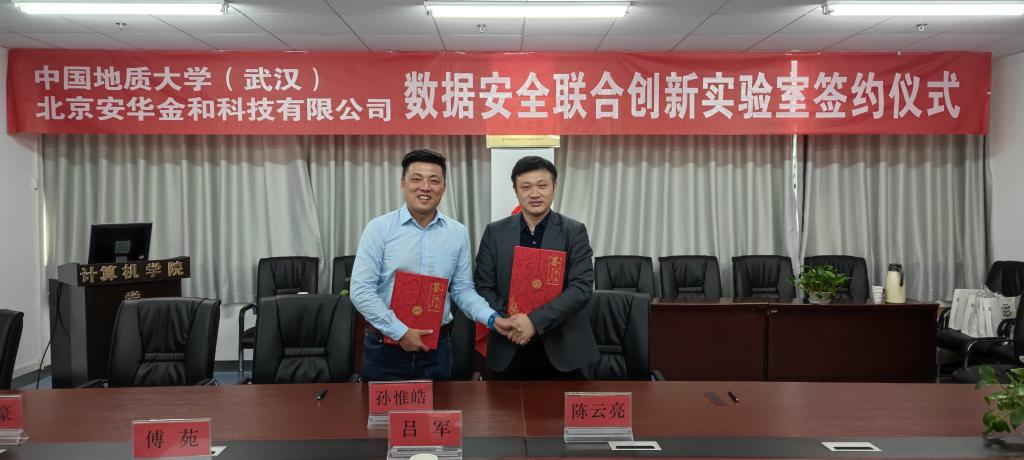 (通讯员:孙彦钦)5月19日上午,免费看a片 与北京安华金和科技有限公司(以下简称安华金和)举行数据安全联合创新研究实验室暨产教融合协同育人基地签约仪式。安华金和高级副总裁孙惟皓、华中区总经理万钧、湖北区总经理胡靖,免费看a片 党委书记吕军、党委副书记傅苑、副院长陈云亮、胡成玉等人参加签约仪式。