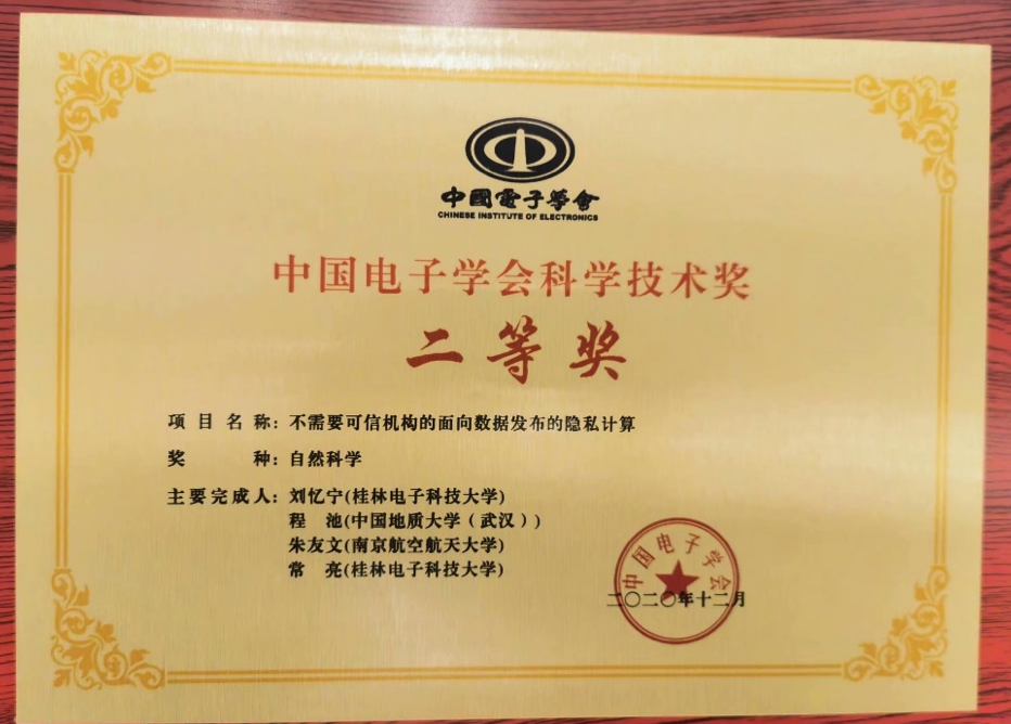 (通讯员:章丽平)2021年4月17-18日,中国电子学会2020年度科学技术奖励大会在重庆举行。免费看a片 信息安全系程池老师与桂林电子科技大学、南京航空航天大学的学者共同完成的“不需要可信机构的面向数据发布的隐私计算”荣获2020年度中国电子学会科学技术奖自然科学二等奖。郝跃院士、刘明院士等23位院士出席大会并颁奖。
