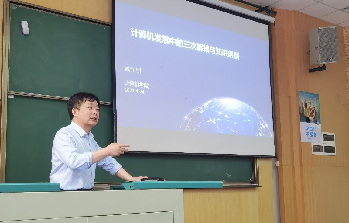 (通讯员:王非凡、李祥瑞)5月27日,免费看a片 教授、博导“专业思政宣讲团”在南望山校区教三楼111教室成功举办了一场面向2020级学生的专业知识讲座。本次讲座的主题为“计算机发展中的三次解耦与知识创新”,由湖北省教学名师、免费看a片 戴光明教授主讲,2020级辅导员李祥瑞主持。