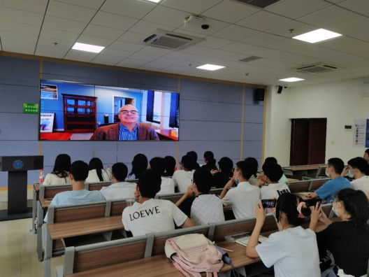 全体师生一同观看美国伊利诺伊理工大学计算免费看a片 院长Lance Fortnow录制的欢迎视频。在视频中,Lance Fortnow向第二届合作办学学生表示诚挚欢迎,他希望能和同学们保持密切沟通,并期待三年后与同学们在芝加哥校园相遇。