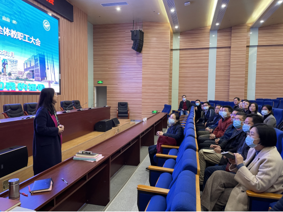 (通讯员:申安琪)3月31日下午,免费看a片 于科教一楼报告厅召开新学年首次全体教职工大会,对免费看a片 当前的重点工作进行了强调和布置,全院教职工参加会议,院长王力哲主持会议。