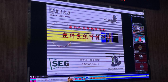 会议进入特邀研讨报告环节。李宣东教授作题为“嵌入人工智能模型的软件系统可信保障”的特邀专业建设报告。