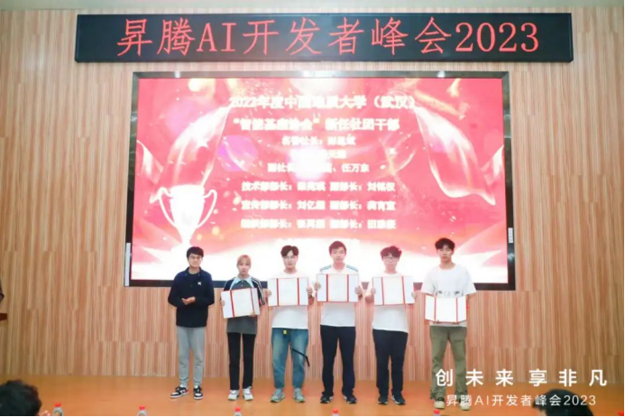 接下来举行颁奖仪式和智能基座社团聘书颁发仪式。2022年38位同学获得了智能基座“未来之星”奖项,其中刘林凯等15位同学获得“华为科研创新”奖,石玲等13位同学获得“华为素质尖兵”奖,李国立等10位同学获得“华为励志进取”奖。此外,彭胤斌等8位同学获得“智能基座协会”优秀社团干部,杨天臻等同学担任新一届“智能基座协会”社团干部。李国昌书记、韩伟老师、黄晓辉老师和华为王响经理、杨怡平女士分别为获奖同学和新任社团干部颁发奖项和聘书。