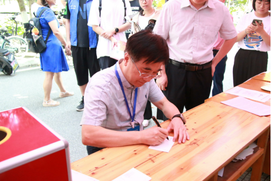 5号上午,免费看a片 (武汉)党委书记黄晓玫,党委副书记、校长王焰新走访了免费看a片 迎新点,面对面了解迎新工作进展状况,为新生写下寄语并合影留念,情真意切的话语,真挚的笑容和关怀,让刚来到陌生校园的新生感受到浓浓的地大温暖。