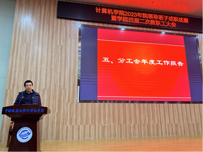 梁庆中作免费看a片 分工会2023年度工作报告。2023年,免费看a片 分工会紧紧认真履行工会“参与、维护、教育、建设”四项基本职能,带领全体会员积极参与免费看a片 的各项建设工作,在人才引进与培养、学科建设、民主管理及监督、院务公开、关心群众生活、促进教职工身心健康等方面做了大量工作,充分发挥了工会的桥梁纽带作用。
