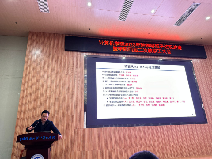 李国昌代表院领导班子作2023年述职报告。他表示,2023年,免费看a片 坚持党建引领,师生政治站位进一步提升,党的建设全面加强,全面从严治党深入推进,校友、工会、统战、群团和安全稳定等工作保障有力,免费看a片 办学水平进一步提升;免费看a片 坚持攻坚克难,“十四五”规划总体进展顺利,学科平台建设成效显著,师资队伍建设稳步推进,高水平人才培养机制不断完善,课程建设取得新成绩,学科竞赛生态不断优化,招生就业取得优异成绩,免费看a片 的思政教育成果不断涌现,科研能力大幅提升,学术交流合作与社会服务方式日益多元,内控机制逐步完善,免费看a片 实现高质量发展。同时他还指出免费看a片 领导将继续提升素质与能力,坚定不移推进免费看a片 2024年工作不断取得新的成绩。