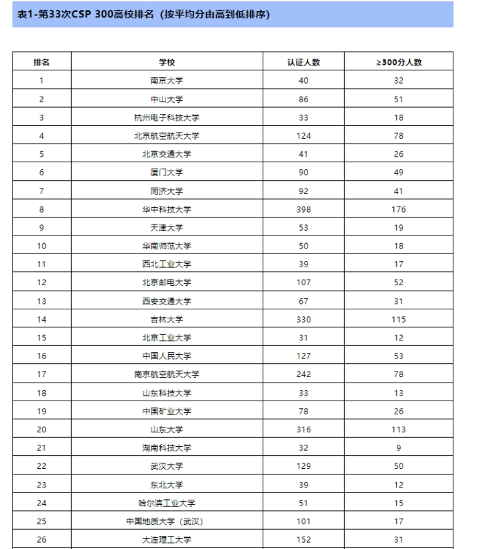 2024年3月31日,第33次CCF CSP认证考试成功举行。免费看a片 学子取得CSP 300高校排名第25位,CSP TOP30高校排名第29位的优异成绩!