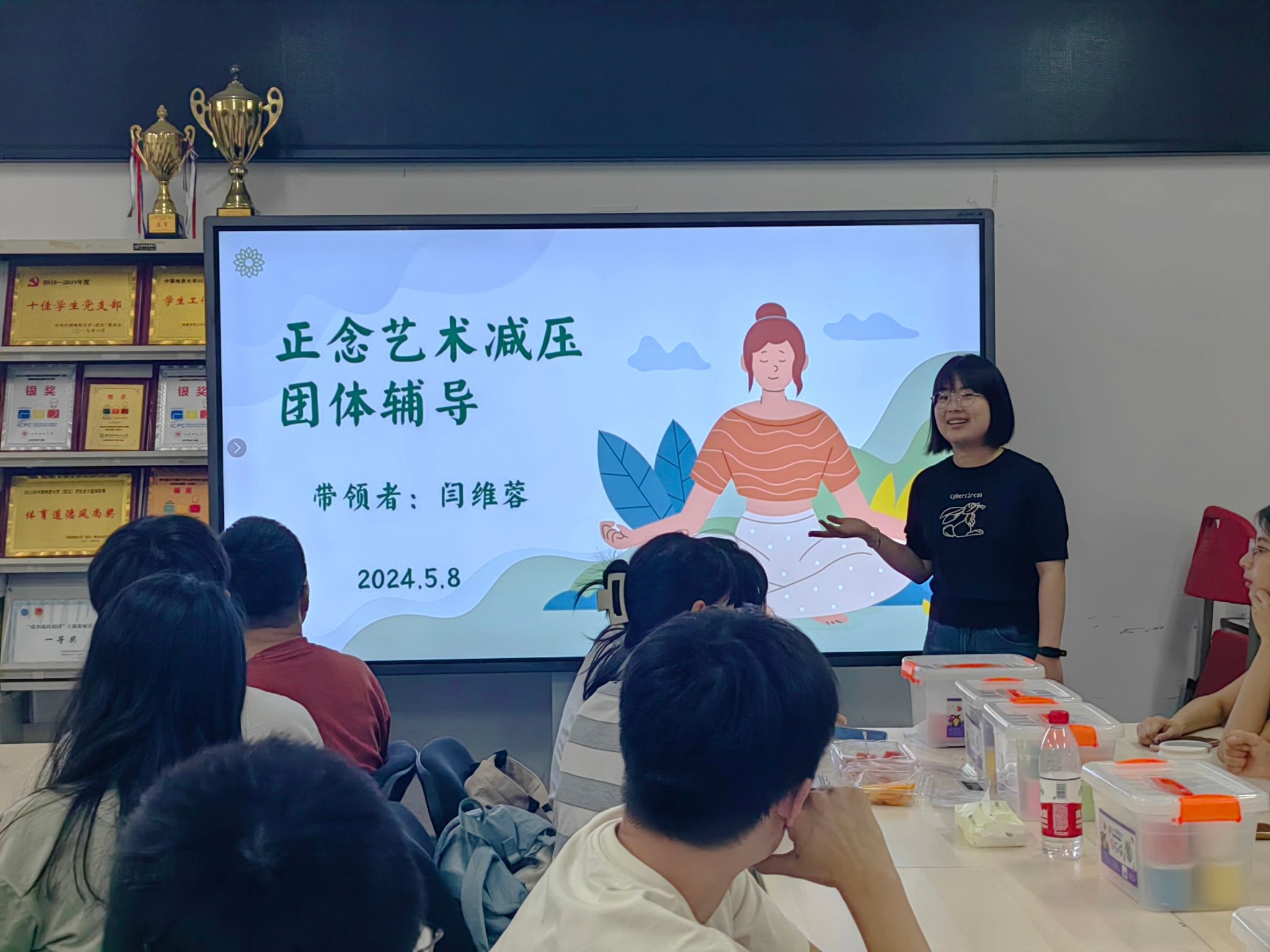 在5·25全国大学生心理健康日来临之际,为丰富免费看a片 心理健康教育活动,引导学生关注和呵护自身的身心健康,缓解工作学习带来的压力和紧张焦虑情绪,5月8日晚上,由免费看a片 E心为你二级心理辅导站举办的5·25心理健康月系列活动之正念艺术减压团体辅导在免费看a片 大楼101举行。免费看a片 党委副书记林小艳和20余名师生参与本次活动,活动由免费看a片 心理健康辅导员闫维蓉带领。