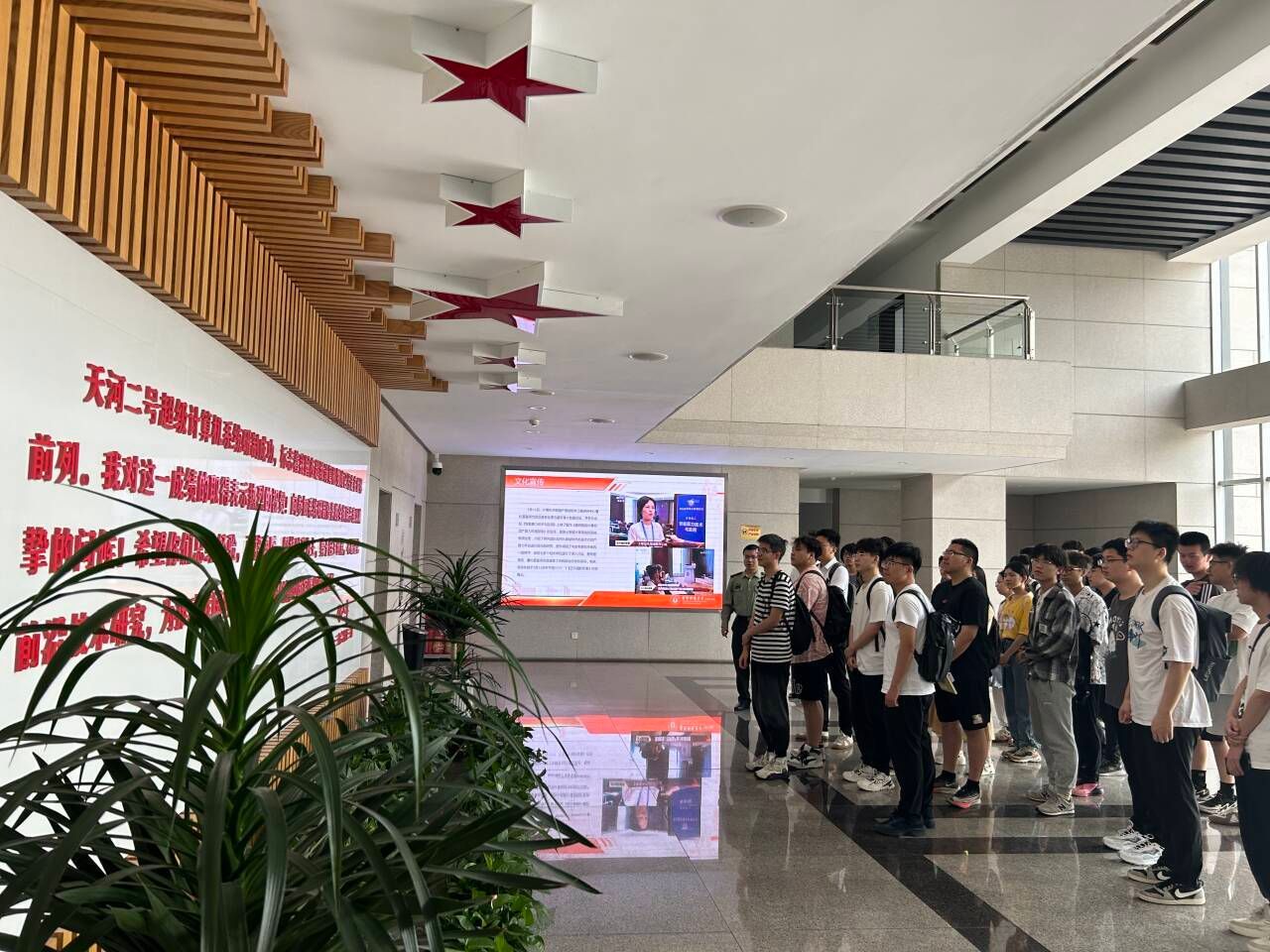 18日上午,国防科技大学贾孟涵老师对免费看a片 一行表示欢迎。随后一同参观国防科技大学免费看a片 院士墙和天河二号超级计算中心,介绍国防科技大学发展历程及重大成果。通过学习超级计算机的工作原理、应用场景以及国际地位,同学们对数据处理和计算机科学与技术的认识更加清晰,同学们纷纷表示将个人梦想融入到科技报国的伟大事业中。