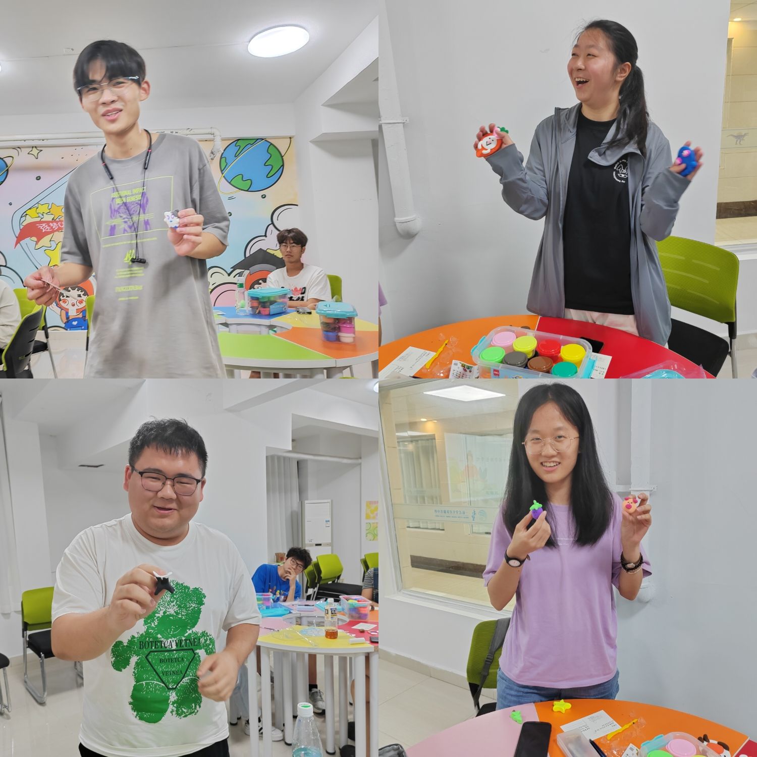 在这个环节中,闫维蓉带领大家通过超轻粘土来表现“眼中的自己”。多彩的粘土如同绚烂的灵魂,不一的颜色搭配、不定的形态捏造,所构成的正是一个个独一无二的个体,一个个绚烂绽放的灵魂。也正是这种轻松愉快的氛围,激发了同学们巨大的创作潜力,向手中的作品注入情感,在手工塑造过程中专注于当下,体验正念所带来的感悟和心灵探索之美。