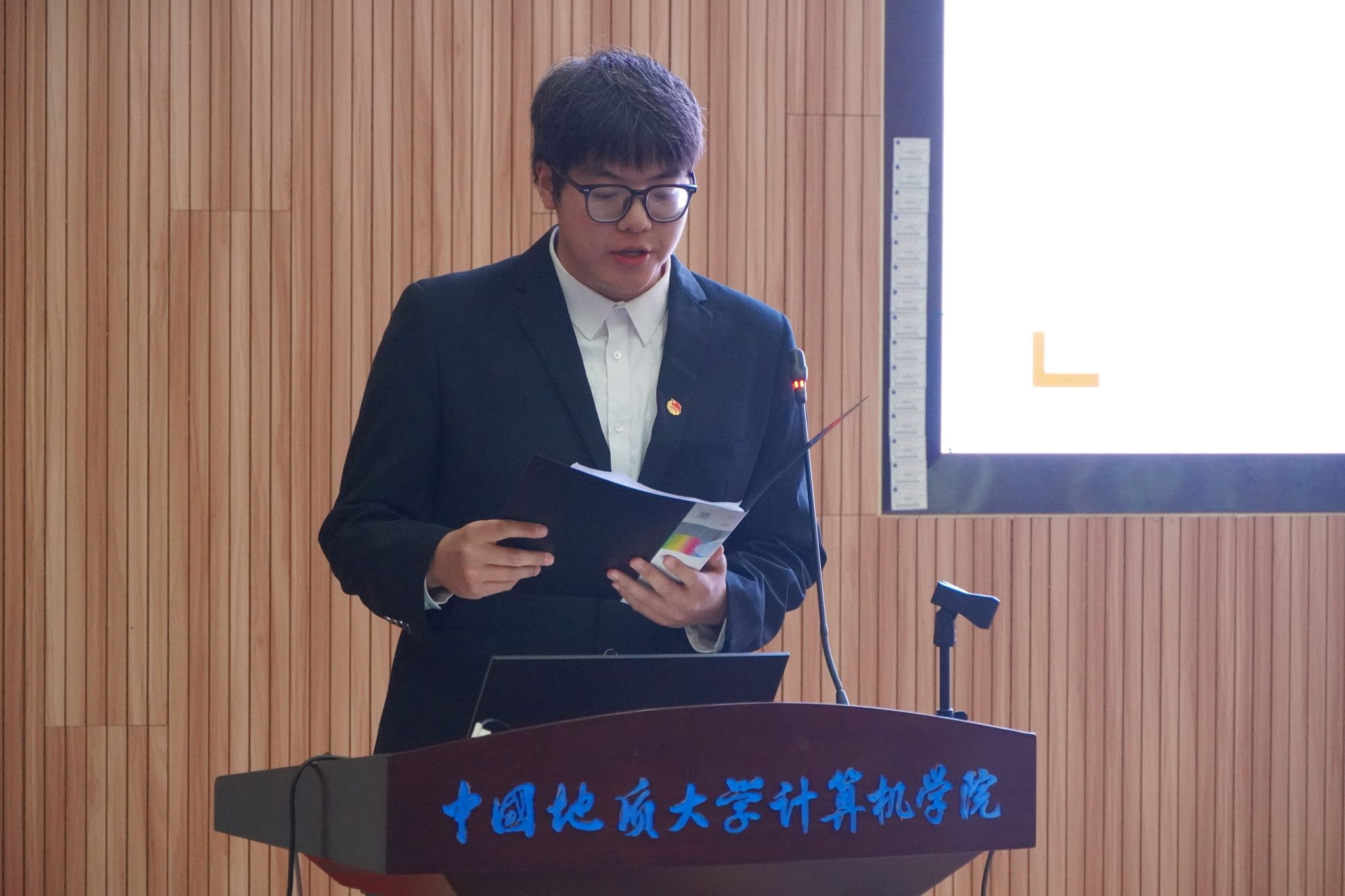 2023届计算机学生会主席团成员董帅宣读大会选举工作人员名单及选举办法。