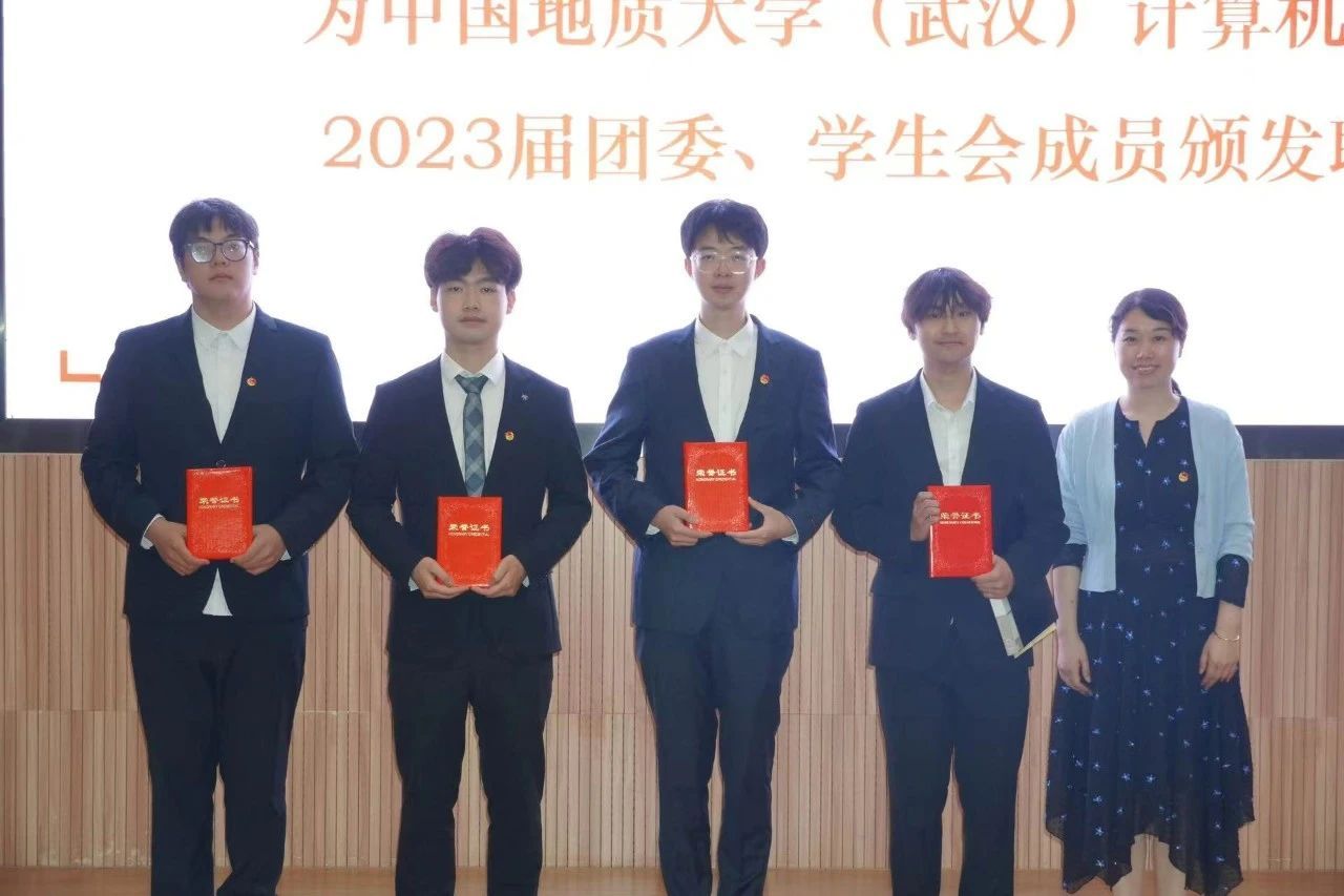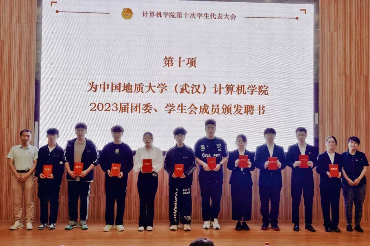 谭文博老师为学生会顾问颁发聘书,闫维蓉,刘佳丹老师为 2023 届学生会成员颁发聘书,王太茂,李欢欢老师为 2023 届团委成员颁发聘书, 林小艳老师为2023届团委学生会主席团成员颁发聘书。
