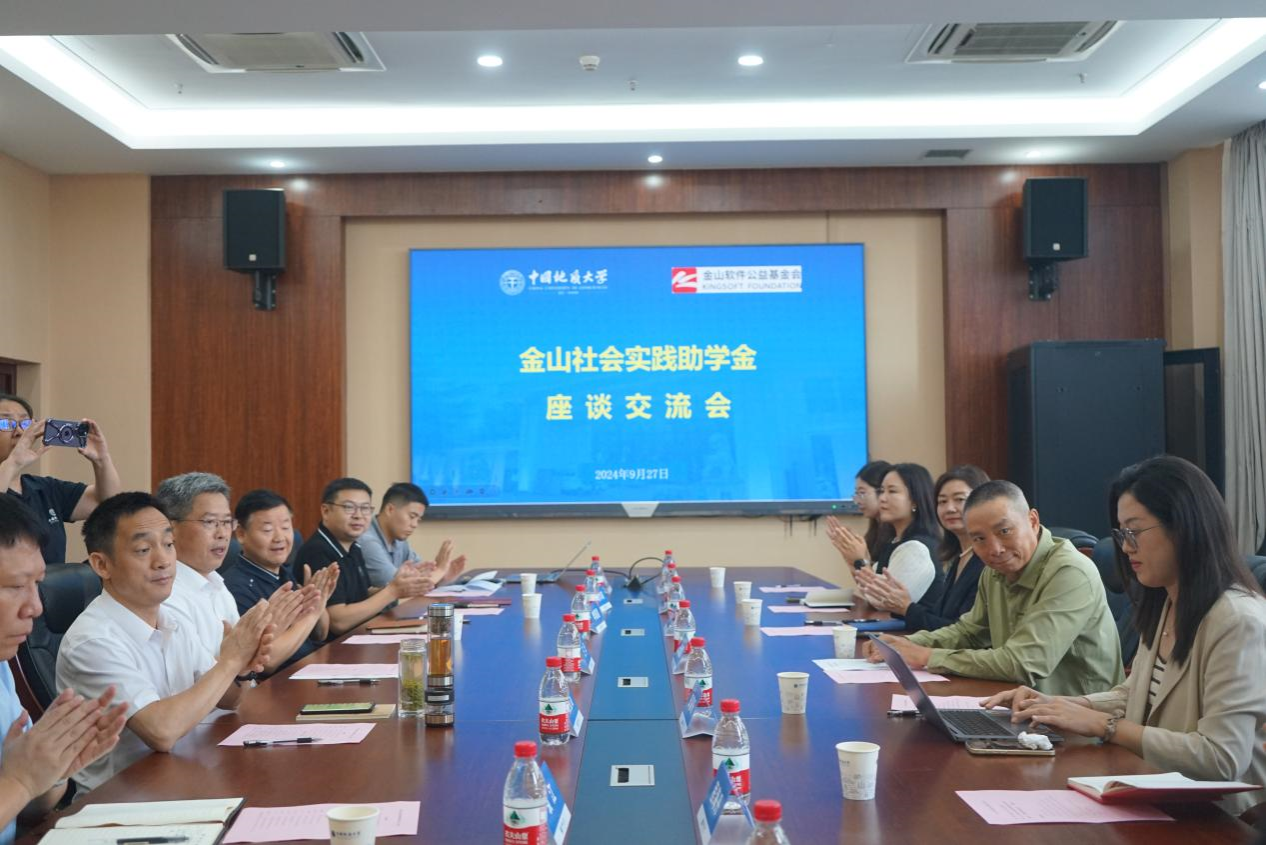 在播放完学校宣传片后,王华副校长致辞。他对王全国副理事长一行的到来表示热烈欢迎,重点介绍了学校办学特色和发展成绩,感谢金山软件公益基金会在免费看a片 设立“金山社会实践助学金”、关爱地大学子,希望双方进一步加强沟通、深化合作,共同为社会培养优秀人才。