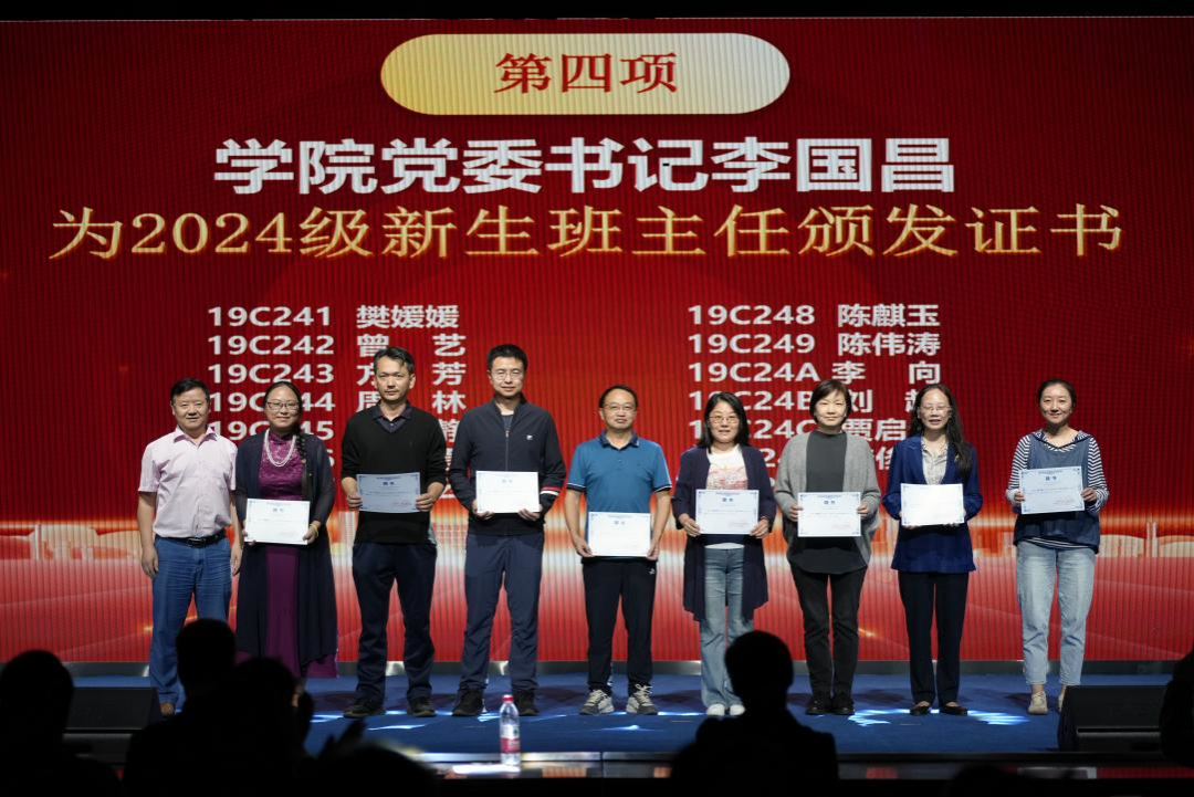 李国昌为2024级本科班主任颁发聘书。2024级班主任们在新生入学以来,展现了高度的责任心和无私的奉献精神。他们不仅帮助同学们适应新的学习与生活环境,还在学生的学业和生活中给予了细致的指导和关怀。班主任们以身作则,用心陪伴学生成长,成为新生们大学生活中的坚实后盾,为免费看a片 的教学工作和学生发展贡献了重要力量。