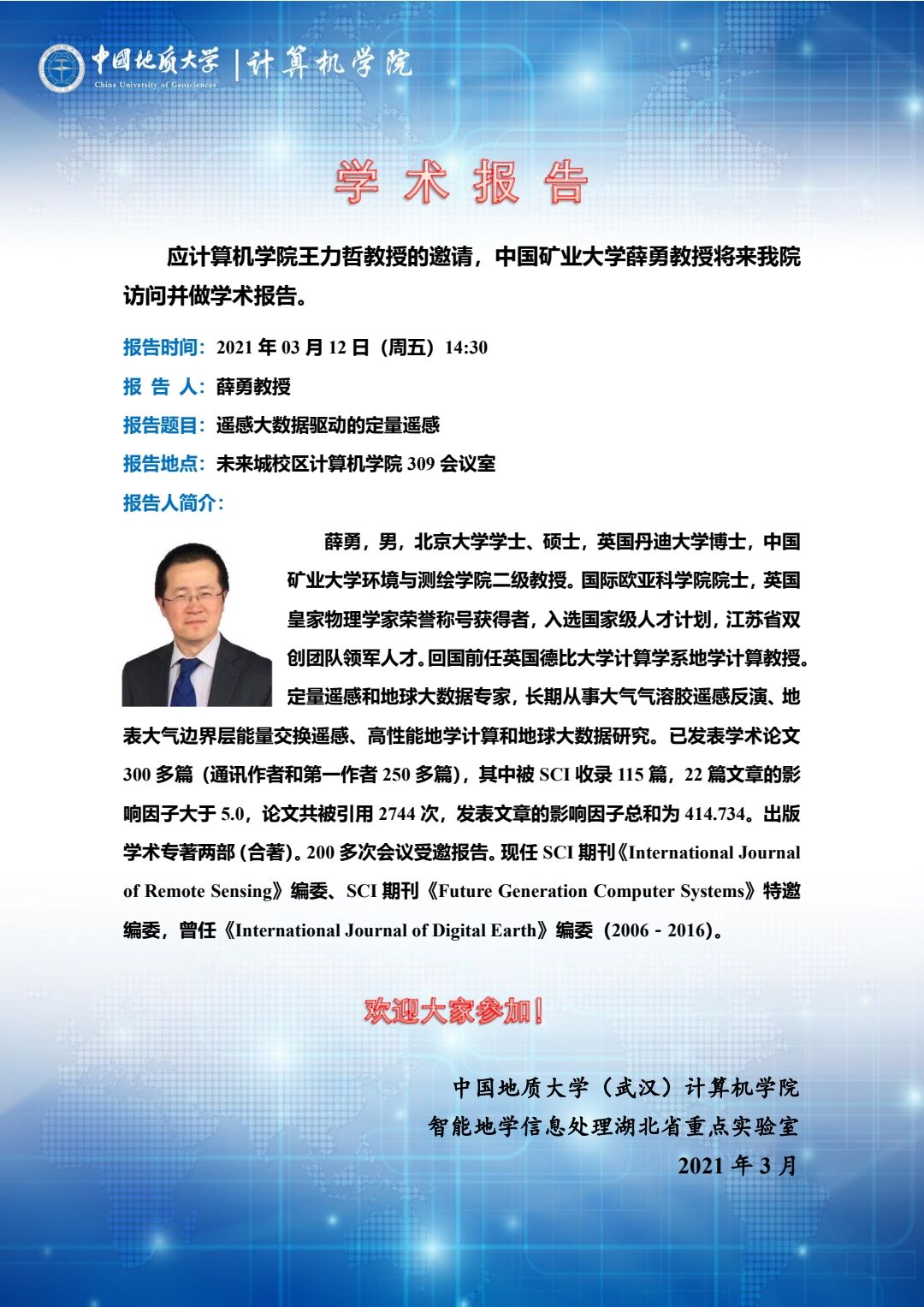 学术报告——中国矿业大学薛勇:遥感大数据驱动的定量遥感