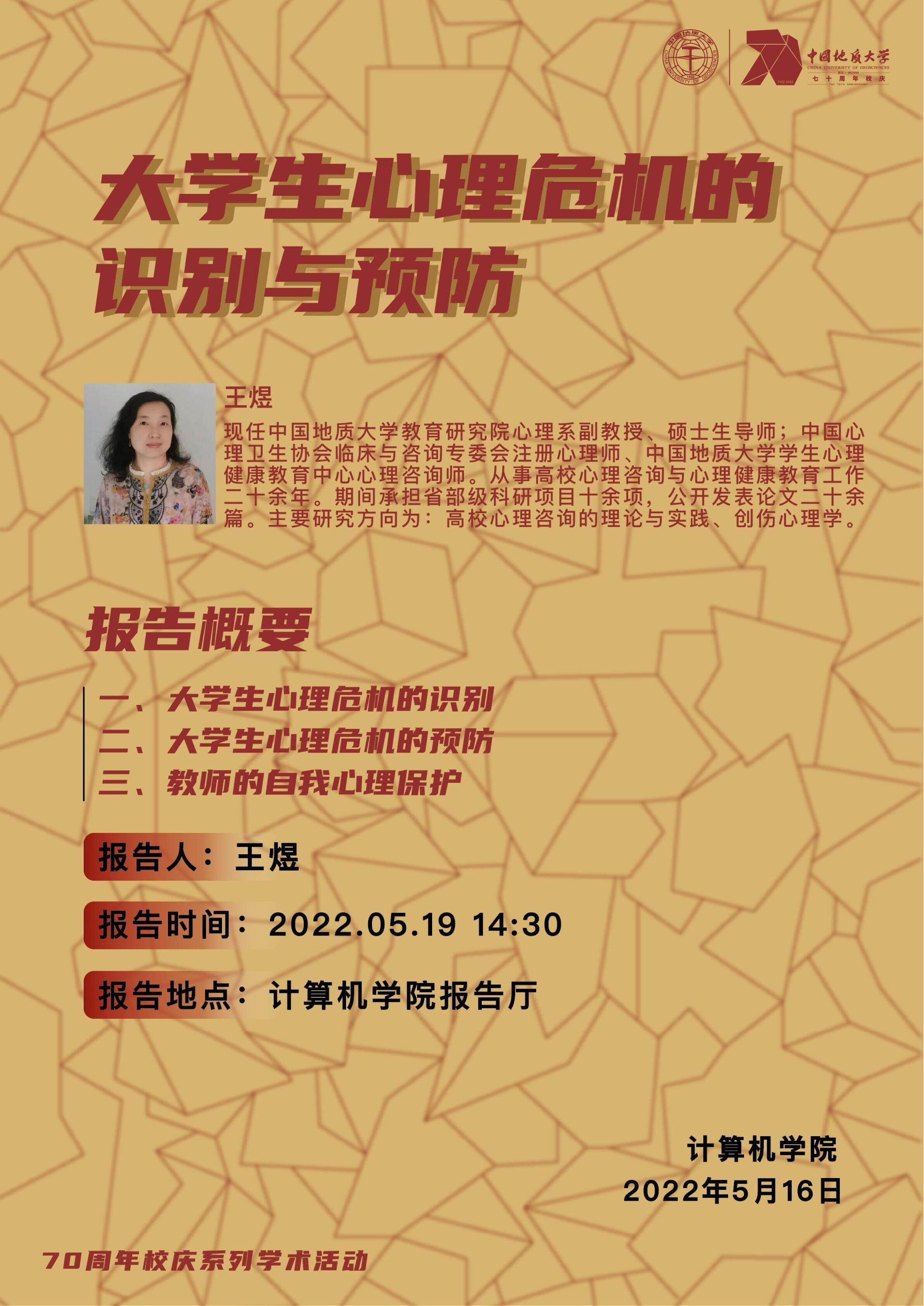 学术讲座——免费看a片 教育研究院心理系副教授王煜:大学生心理危机的识别与预防