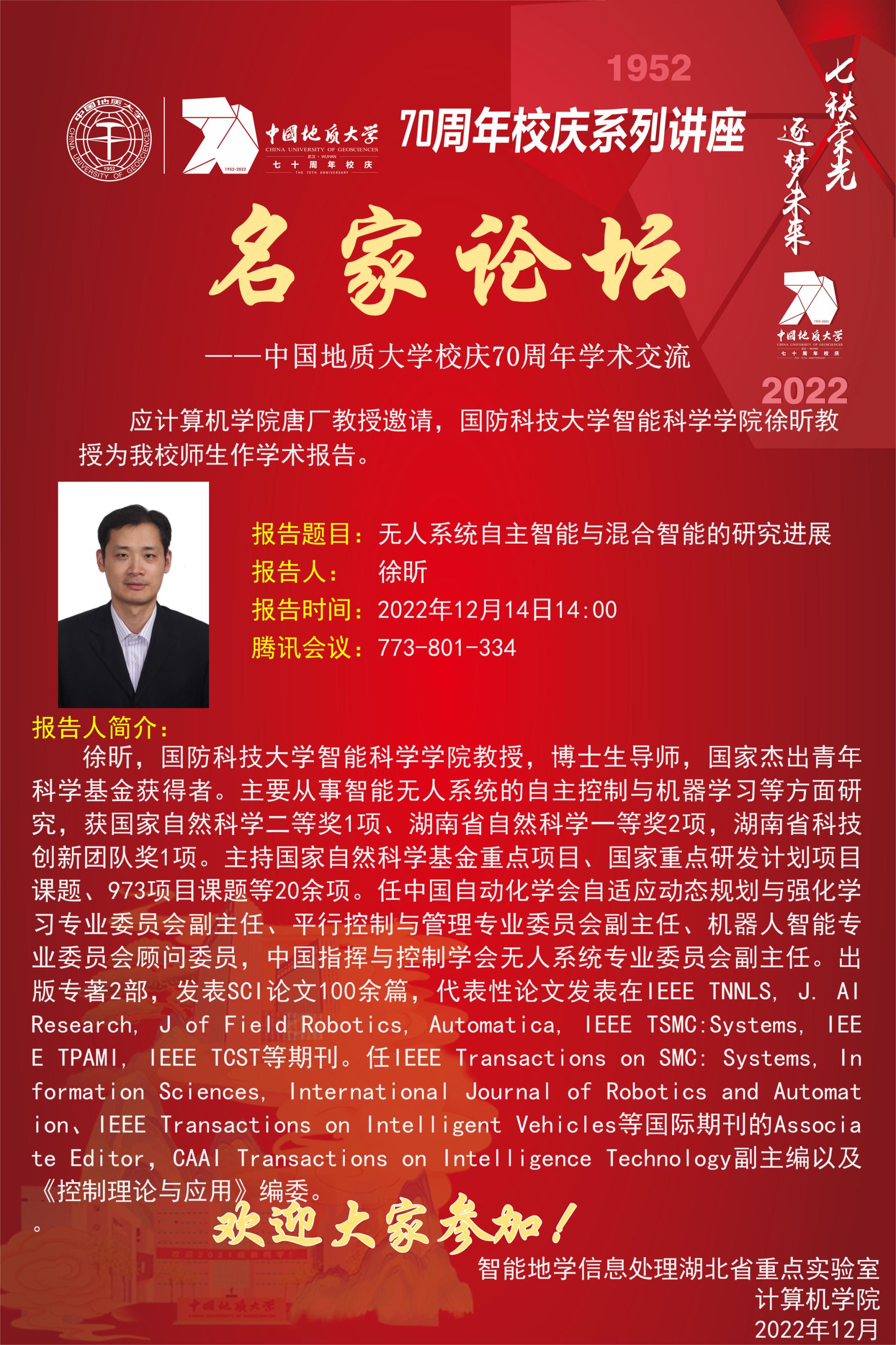 学术报告:国防科技大学智能科学免费看a片 徐昕教授——无人系统自主智能与混合智能的研究进展