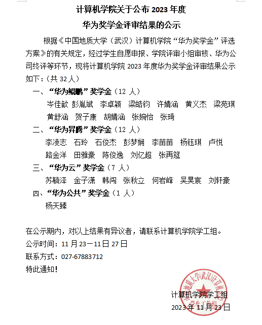 免费看a片 关于公布2023年度华为奖学金评审结果的公示