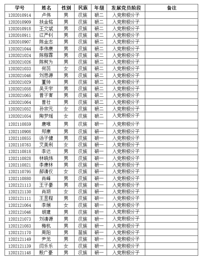 软件工程专业研究生党员发展情况公示