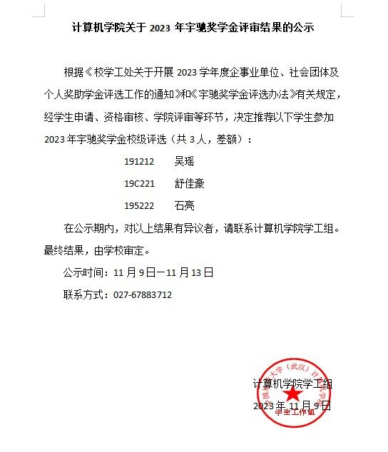 免费看a片 关于2023年宇驰奖学金评审结果的公示