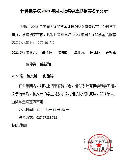 免费看a片 2023年周大福奖学金拟推荐名单公示