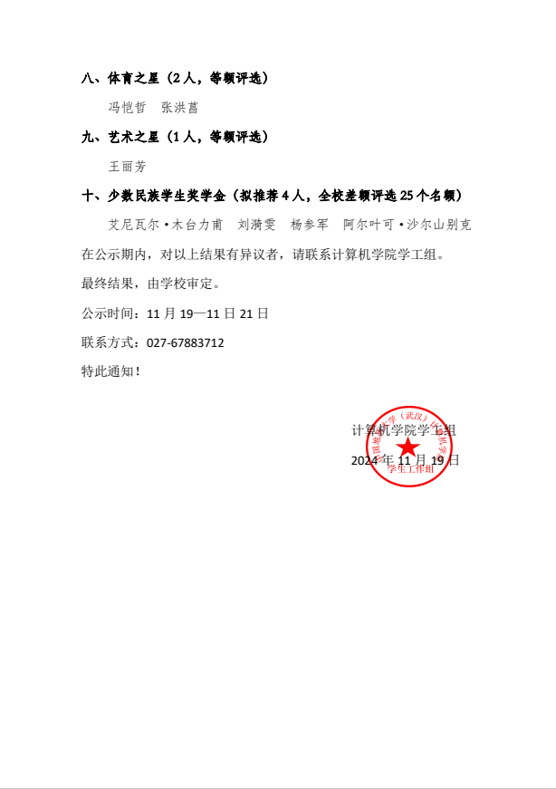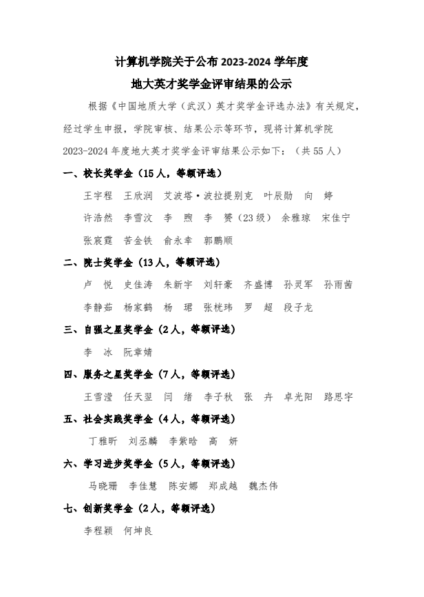 免费看a片 关于公布2023-2024学年度地大英才奖学金评审结果的公示