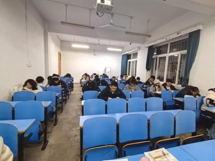 第15周至19周,除了每周日的年级集体晚自习外,面向2025级重点学科学业困难的同学增设周五、周六集体晚自习,采用“自主选择参与+严格签到签退”模式,同学们可根据自身复习节奏任选一晚参与。2025级学生服务组联合值班值守,全程维护自习秩序,细致记录出勤情况,及时收集并反馈请假材料,为备考营造安静专注的集体学习氛围。