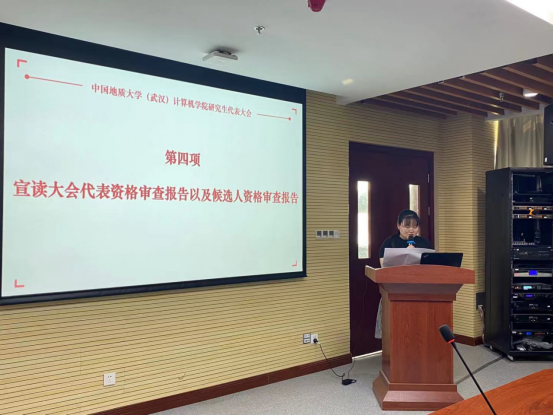 大会第三项,由免费看a片 研代会代表资格审查小组、候选人资格审查小组成员李珊宣读《免费看a片 研究生代表大会代表资格审查报告》和《免费看a片 研究生代表大会候选人资格审查报告》,经认真细致的审查,全部代表和候选人的产生选举程序均符合有关规定,代表和候选人资格全部有效。