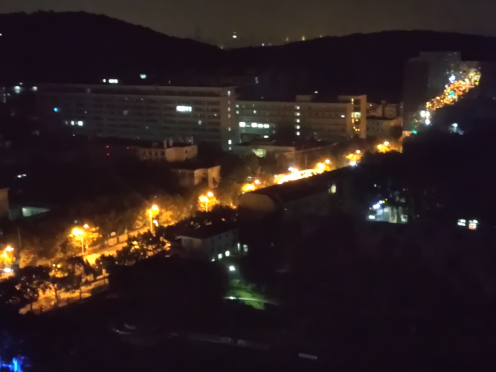 比赛第三天,也是最后一天,凌晨1点,从东综望向鲁磨路,珠宝大楼的镜面墙壁把灯火延伸到远方。