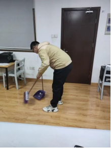 同学们高度重视积极参与,纷纷“脱下袄子、撸起袖子”,精神饱满、干劲十足地投身到大扫除中。扫地、拖地、整理、消毒,大家分工合作、相互配合,一丝不苟地清理卫生。宿舍、实验室到处都是同学们忙碌的身影。经过大家的共同努力,宿舍窗明几净,实验室一尘不染,公共区域更是焕然一新。