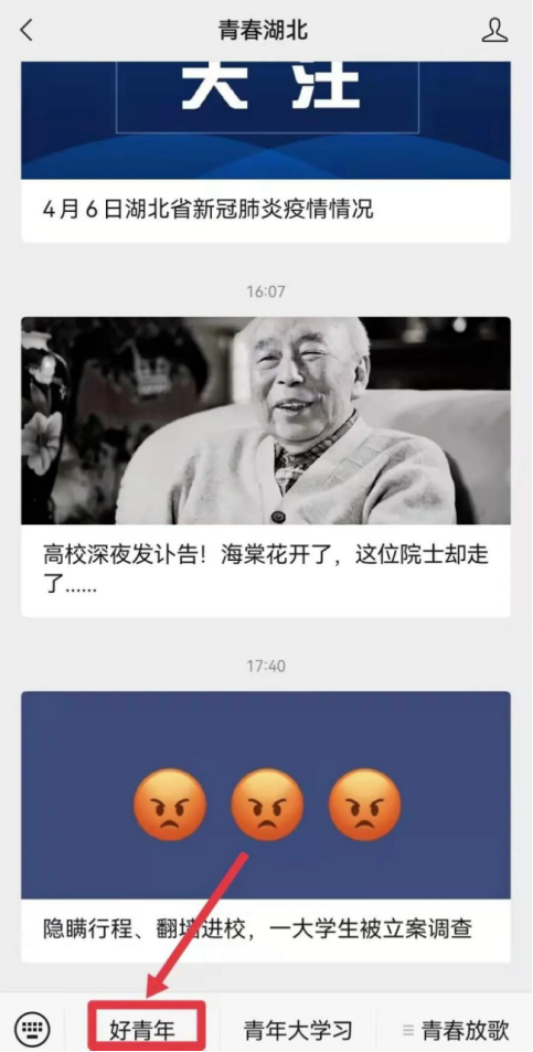 点击左下角“好青年”