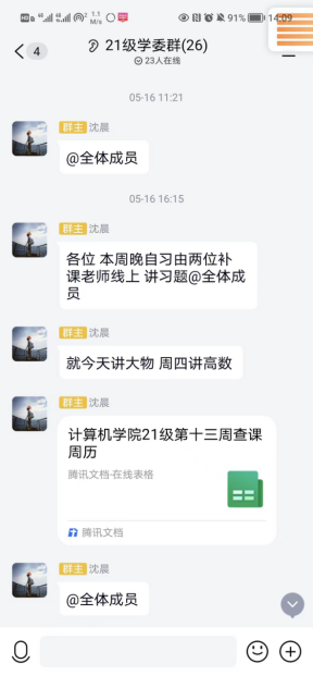 习近平总书记在全国高校思想政治工作会议上指出:“一所高校的校风和学风,犹如阳光和空气决定万物生长一样,直接影响着学生学习成长。” 为了不断提升免费看a片 “勤学、乐学、助学”的学习氛围,免费看a片 德育工作组从不同维度落实开展学风建设工作,如每周定时定点的学长学姐答疑晚自习、计科“E”课堂朋辈领英团的互帮互助、以及学工组“三查”工作的课堂考勤。了解每日每节到课情况的同时,每周将“三查”工作在班主任群、家长群、年级大群公示,坚持严在地大,学在计科的优良学风,为21级学风建设保驾护航!