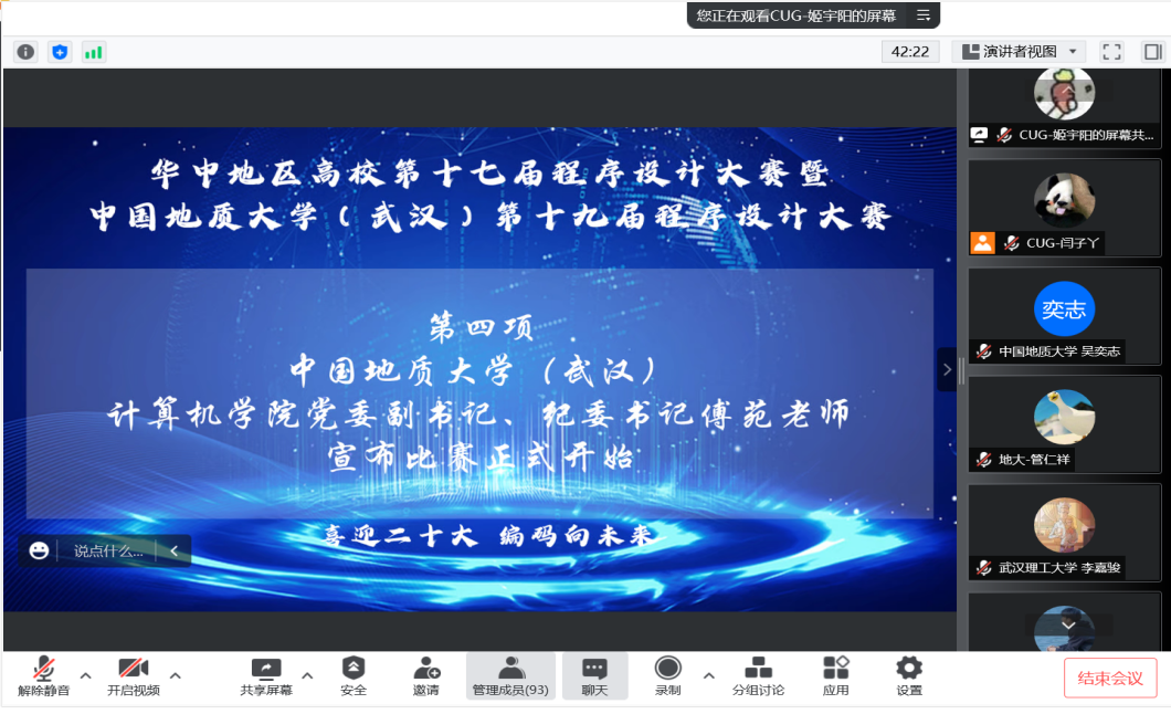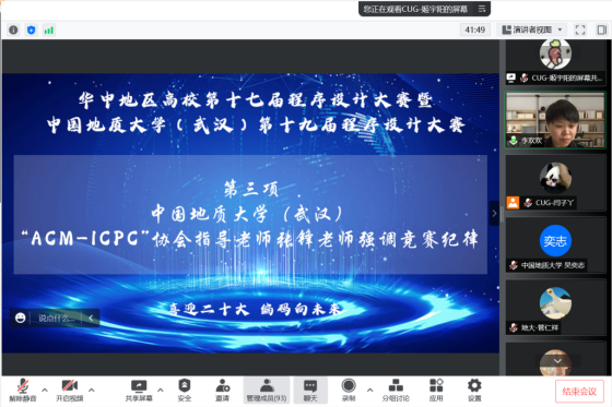 活动伊始,李国昌致开场辞。他代表地大免费看a片 向所有参赛选手表示欢迎,介绍了免费看a片 ACM系列活动开展情况和“ACM-ICPC”协会的发展历程,2021年协会突破历史,获得ACM-ICPC亚洲区域赛金奖。希望同学们在本次比赛中取得佳绩,在未来学习中立科技兴国之志,谋专业报国之实,争做时代先锋,为实现中华民族伟大复兴贡献青春力量。