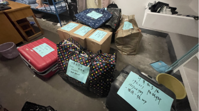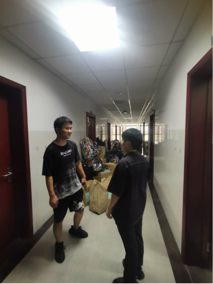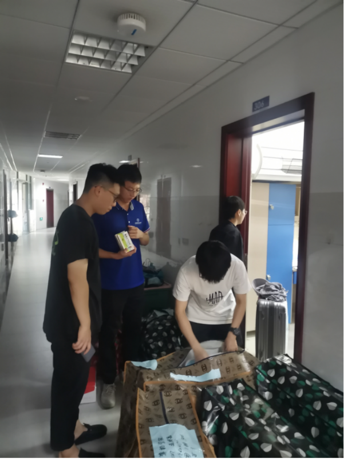 搬迁前一晚,同学们使用免费看a片 派发的物资,认真打包好行李,在各自的行李上贴好标签,以免丢失。免费看a片 还提前准备了消暑药品、晕车药、饮用水供学生自取。