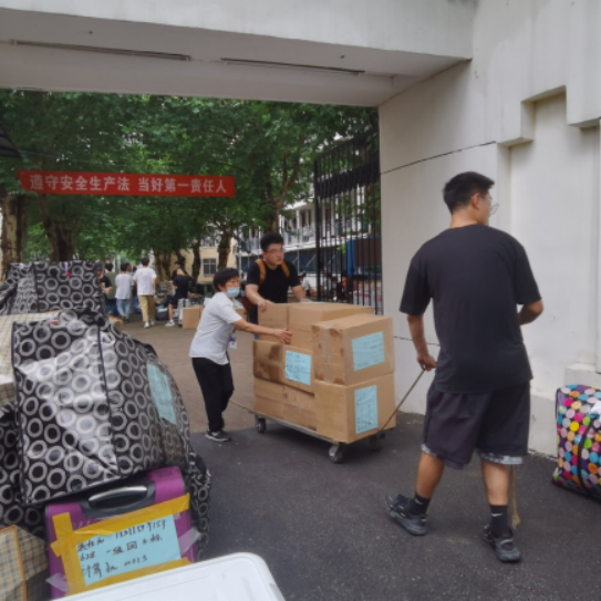 班主任、学工组的老师们全程守在搬运现场,维持秩序,提供帮助。