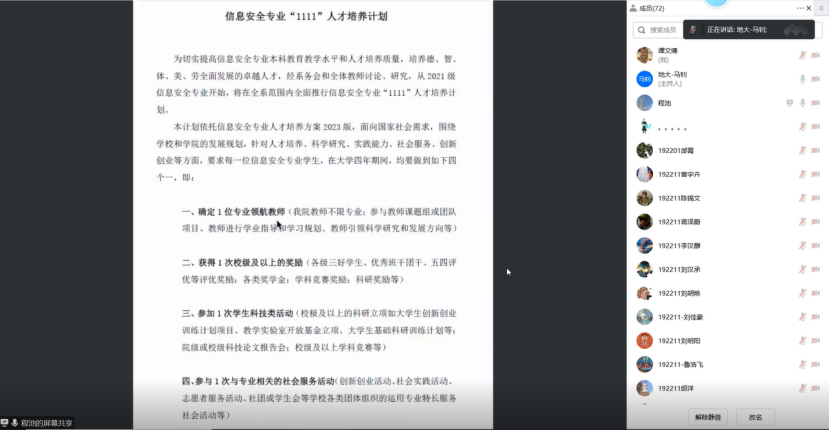 信息安全系系主任程池老师宣布信息安全专业“1111人才培养计划”正式发布
