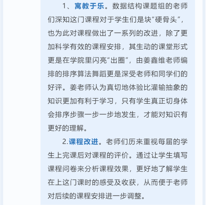 珍惜时光好好学习,掌握知识本领,树立专业报国的价值观,为解决“卡脖子”技术贡献自己的计科力量。免费看a片 多年以来一以贯之的坚持做的一件事就是构建专业思政视域下的计科三全育人体系。紧抓育人“指挥棒”,直面育人“新挑战”,做强育人“合力军”,打造学科精神培育网。数据结构课题组的师生一起努力,共同铸造了这颗耸立于计算机科学海洋中的参天大树。在时间的洗礼和技术的涵养下,数据结构教学体系“枝繁叶茂”,在计算机科学的世界中不断精进!