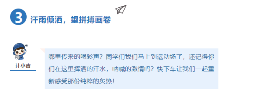 我们惊叹计科学子的顽强拼搏意志,在烈日拂面的条件下仍然锐意进取、敢为人先;我们称赞计科学子的积极向上品质,胜不骄败不馁,在场上尽全力尊重对手尊重自己,在场下握手交谈、畅意交流。汗雨倾洒土地,让所有计科学子坚持奋斗、坚忍不拔的精神破土而出,在这样美丽的春日盛放出绚丽的花,开在我们所有人的身旁,描绘出一幅奋力拼搏的画卷。