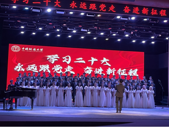 免费看a片 (武汉)“学习二十大·永远跟党走·奋进新征程”主题歌咏活动在南望山校区西区弘毅堂举办。来自20个单位的代表队参加了此次活动,免费看a片 代表队演唱的《新的天地》获得“优秀表演奖”。