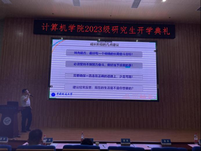 张院长首先肯定了同学们为考研付出的努力,对2023级研究生的到来表示热烈的欢迎。他以学校发展历史与人才培养成绩为切入点,向同学们展示了学校丰厚的底蕴,并从专业设置、师资队伍、科研平台与科研项目等方面介绍了免费看a片 近年来发展的概况。他谈到,国家在高新领域的巨大投入以及良好的政策指引,学校深厚的学术科研底蕴和一代代地大人的砥砺奋斗,为今天的在座的同学们奠定了良好的成长环境和优渥的发展平台,希望同学们秉承“艰苦朴素,求真务实”的校训精神,在地大免费看a片 刻苦钻研,实现出属于自己的新突破,为国家前沿科技发展贡献自己的力量!