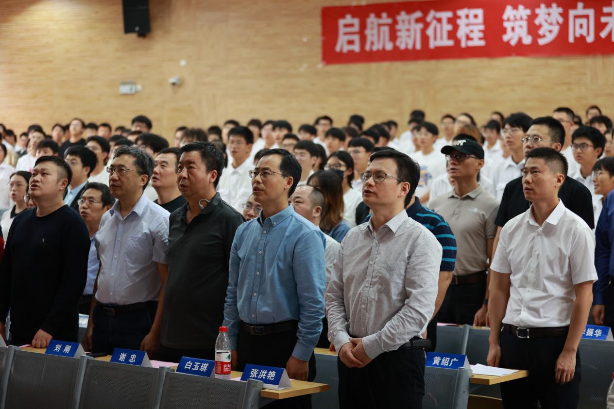 典礼开始,全体起立,奏唱国歌。