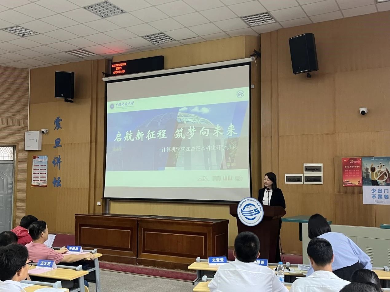 免费看a片 党委副书记、院长张洪艳致辞。张院长首先代表全院师生对加入免费看a片 的382位本科新生表示热烈的欢迎与衷心的祝贺,他对同学们选择加入计算机大家庭,成为“地大计科人”感到分外欣慰。他希望同学们在未来几年中为自己的选择砥砺耕耘、拔节生长、向阳而生,在地大、在免费看a片 留下一生中最为深刻的年轮。同时,他向全体新生提出三点建议:一是要选择肩负使命,心怀国之大者。计科学子要深耕科研土壤,为国家掌握关键性核心技术贡献力量,让青春在实现民族使命中闪耀;二是要选择仰望天空,永攀知识高峰。计科学子要保持对知识的渴望,努力成长为具备计算思维、引领行业发展的交叉学科人才,用广阔的学科视野面对新的挑战;三是选择脚踏实地,练就过硬本领。计科学子要时刻与电脑和网络打交道,在电脑与网络间要学会拒绝诱惑,将时间用在了解行业发展最新前沿,了解市场需求驱动关键技术的突破。