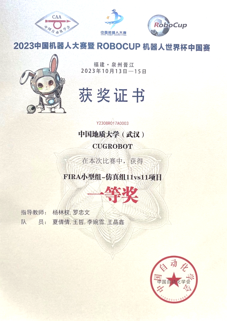 10月13至15日,2023年“中国机器人大赛暨RoboCup机器人世界杯中国赛”在福建晋江国际会展中心落下帷幕。免费看a片 免费看a片 杨林权副教授和罗忠文教授指导的学生团队参赛。经过激烈的比赛,最终学生团队勇夺FIRA仿真组5vs5项目第3名,国赛一等奖和仿真组11vs11项目的第3名,国赛一等奖。