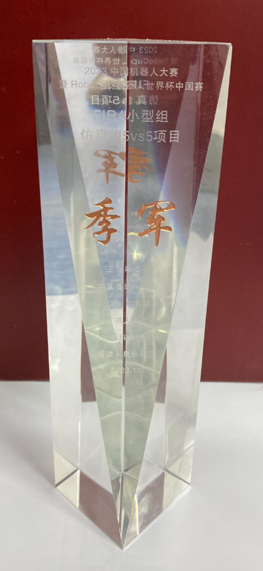 由张翡、朱子恒和曾馨等学生组成的FIRA仿真组5vs5项目代表队和由夏倩倩、王哲、李婉雪和王晶鑫等学生组成的FIRA仿真组11vs11项目代表队,从单个机器人的运动控制到物理模型预测,再到多个机器人的路径规划和整个机器人队伍的阵型协同优化,机器人代表队在指导老师的带领下日夜奋战,不断攻克难题,不断进步。经过小组循环赛、淘汰赛和最后的决赛,他们凭借高超的技战术水平和稳定的表现取得了两个季军和两个一等奖的优异成绩。